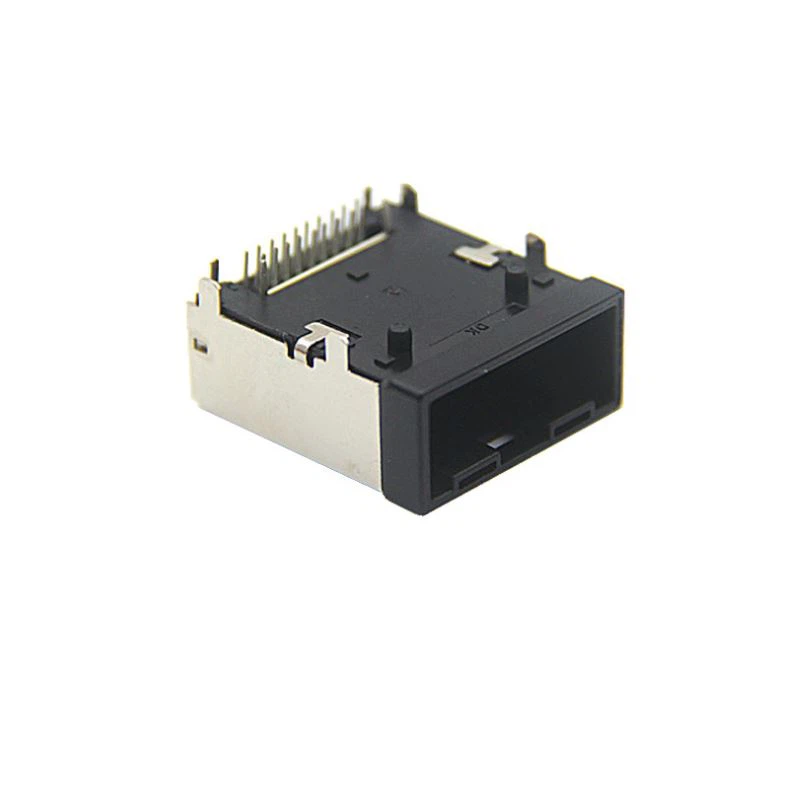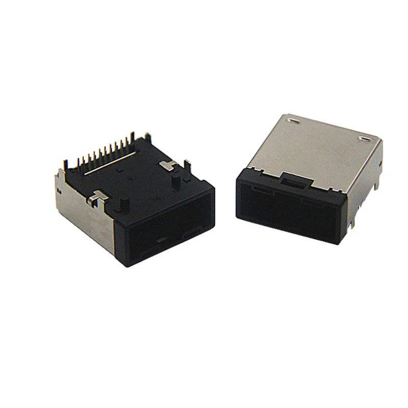 Conector tipo HDMI Ees un tipo de cuatro conectores HDMI, que también está aprobado por la Asociación HDMI. El conector HDMI tipo E proporciona a los clientes calidad de imagen HD y transmisión de datos confiable, lo que lo hace ideal para entornos automotrices. La diferencia entre el conector tipo HDMI E con el conector HDMI A / C / D común es la estructura del conector. El conector tipo HDMI E de grado del sistema de conexión automotriz contiene una carcasa de metal con un buen blindaje, que reduce las interferencias electromagnéticas y es bueno para la transferencia de datos. Contactos de tipo DIP y un sonido de bloqueo audible para evitar problemas de medio acoplamiento.